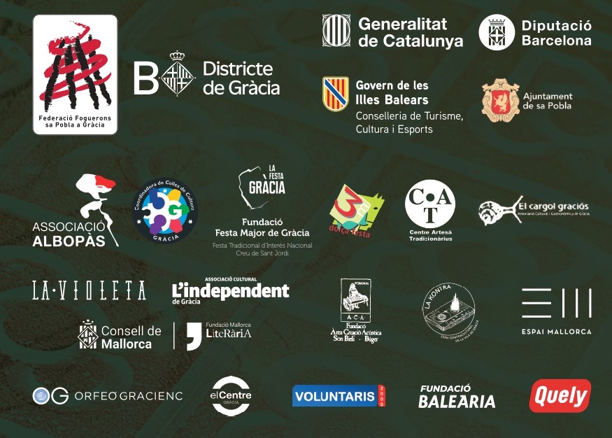 Els membres de l’ACA, venen cada any a Gràcia oferint el seu suport en els correfocs, i ens delecten amb la seva música tradicional i una selecció de productes alimentaris mallorquins.